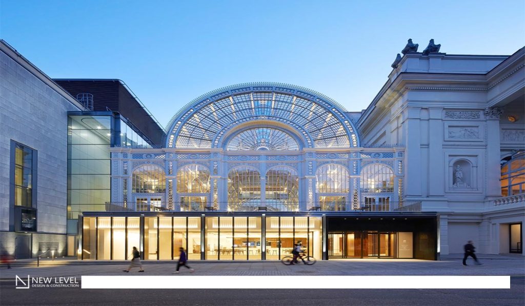 نمونههایی از کاربردهای جسورانهتر و در مقیاس بزرگتر نیز وجود دارد، مانند ساختمان اپرای سلطنتی (Royal Opera House). علاوه بر بازسازی نما، فضاهای عمومی جدیدی به طبقه همکف داخلی اضافه شد، از جمله کافه، فروشگاههای جدید و فضاهای غیررسمی برای رویدادها و نمایشگاهها. علاوه بر این، لابی پذیرش و ورودی در سطح خیابان نیز نوسازی شدند.