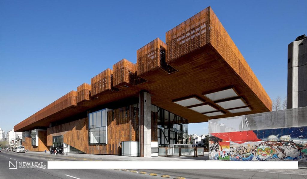 مرکز فرهنگی گابریلا میسترال (Gabriela Mistral Cultural Center) در سانتیاگو د شیلی نمونهای از این رویکرد است که نشان میدهد چگونه میتوان یک ساختمان را حفظ کرد و در عین حال درک تاریخی آن را تغییر داد و بهرهوری انرژی آن را بهبود بخشید. این ساختمان که پیشتر بهعنوان دفتر مرکزی دولتی استفاده میشد و اکنون به فضایی برای هنر و فرهنگ اختصاص دارد، دو ماده اصلی در طراحی خود به کار برده است: فولاد کورتن (Corten Steel) بهعنوان پوشش کلی ساختمان و سیستم عایق دیوار خارجی.