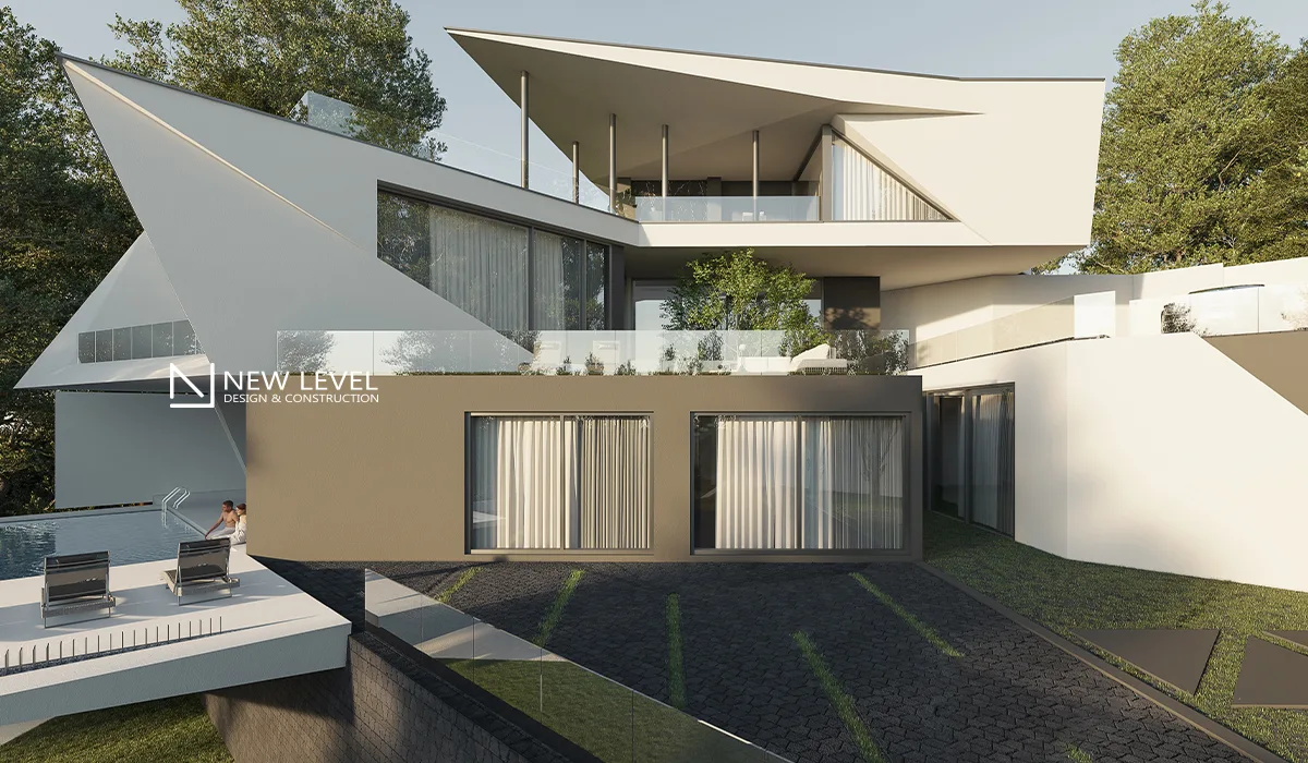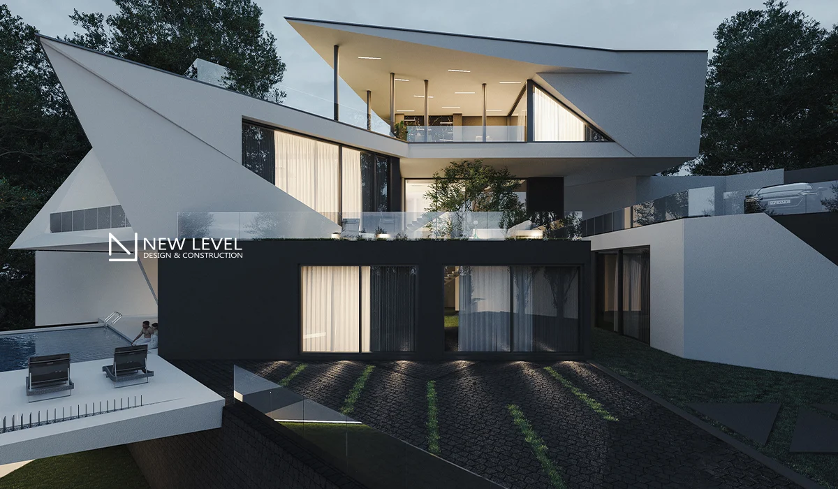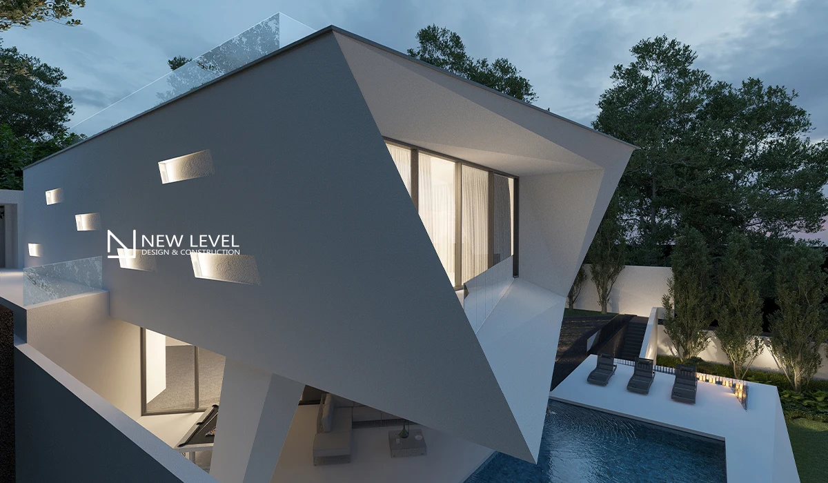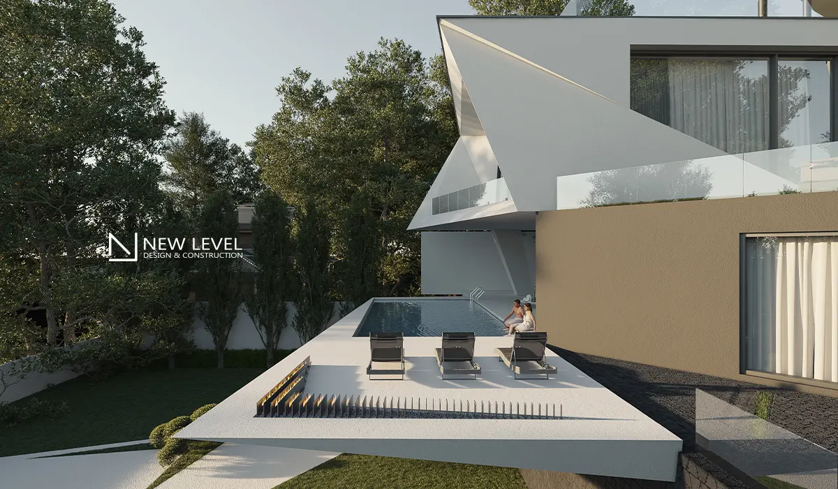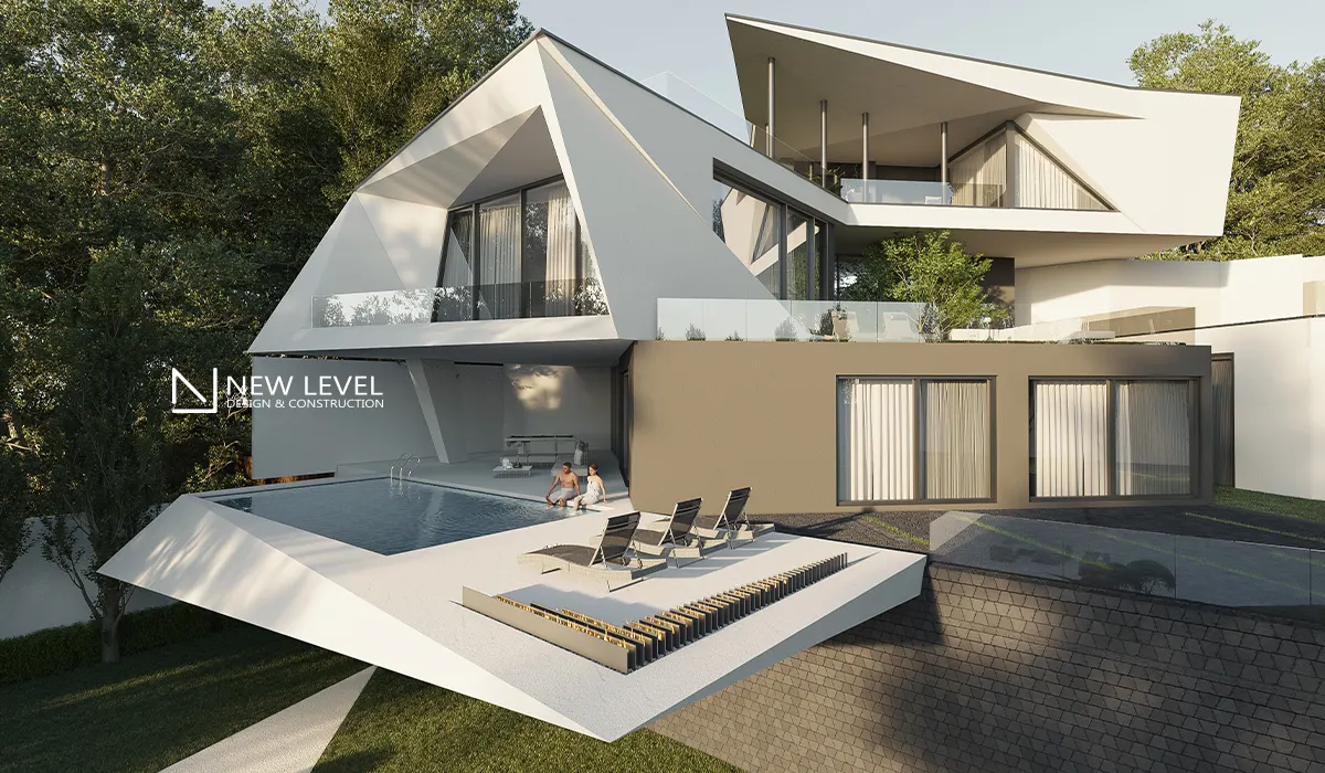 یکی از شاخص ترین ویژگی های پروژه ویلا پیور، استخر نیمه معلق با حجم مثلث وارونه است که به عنوان نقطه کانونی طراحی عمل میکند. این استخر معلق، نه تنها تجربهای متفاوت از شنا کردن ارائه میدهد، بلکه به عنوان یک المان بصری منحصربه فرد، حس معلق بودن و سبکی را در کل پروژه تقویت میکند. طراحی هوشمندانه این استخر، نمادی از تعادل و تضاد در معماری معاصر است.