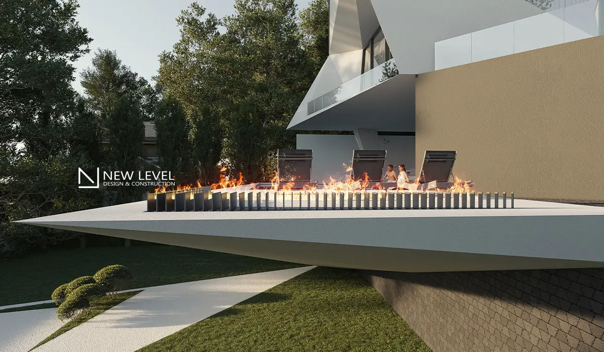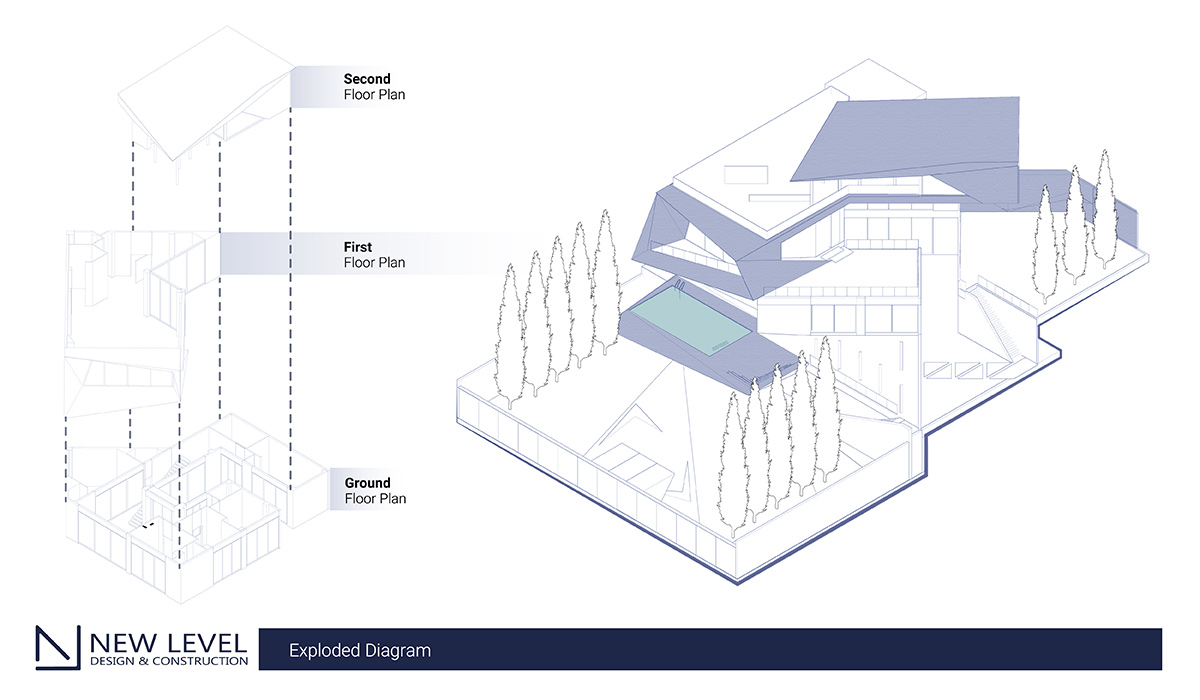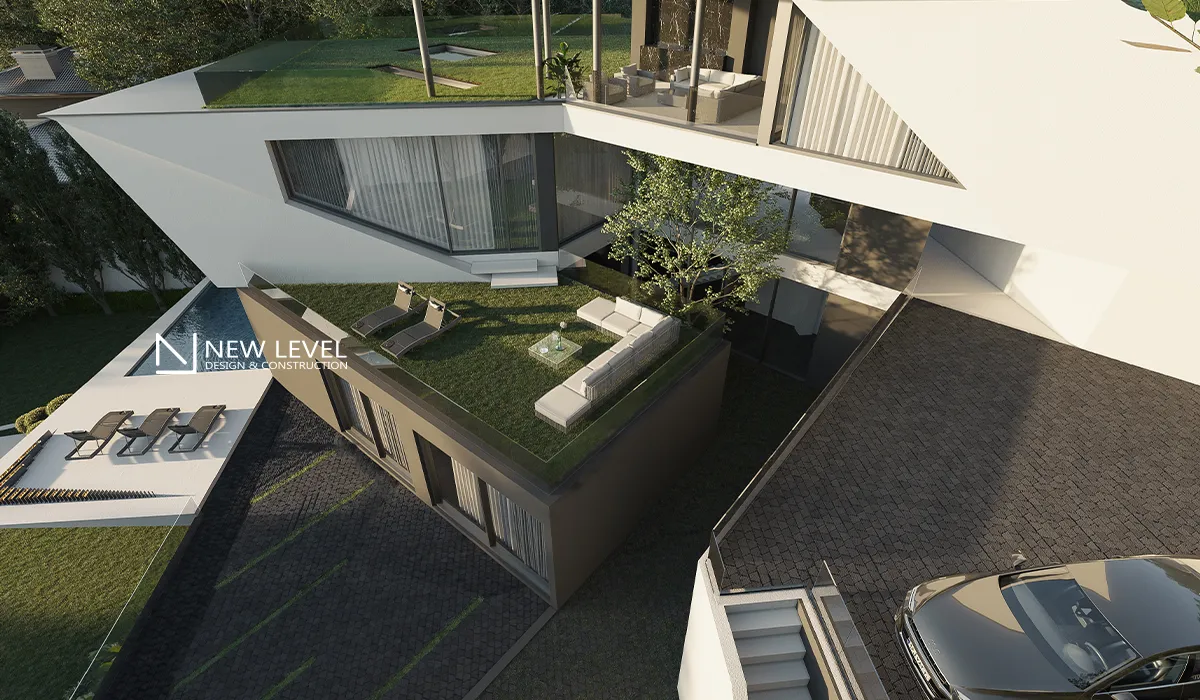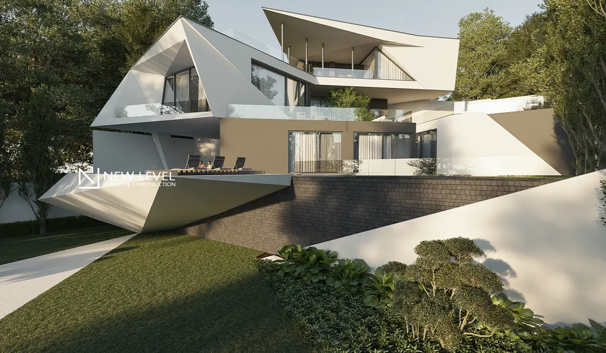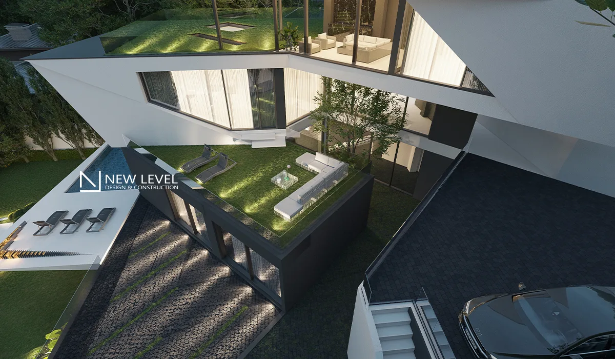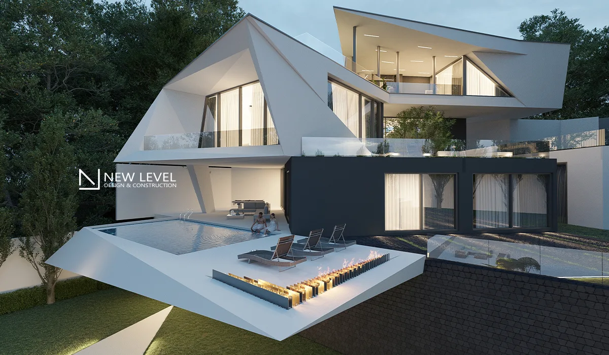 یکی از شاخص ترین ویژگی های پروژه ویلا پیور، استخر نیمه معلق با حجم مثلث وارونه است که به عنوان نقطه کانونی طراحی عمل میکند. این استخر معلق، نه تنها تجربهای متفاوت از شنا کردن ارائه میدهد، بلکه به عنوان یک المان بصری منحصربه فرد، حس معلق بودن و سبکی را در کل پروژه تقویت میکند. طراحی هوشمندانه این استخر، نمادی از تعادل و تضاد در معماری معاصر است.