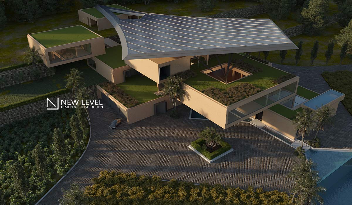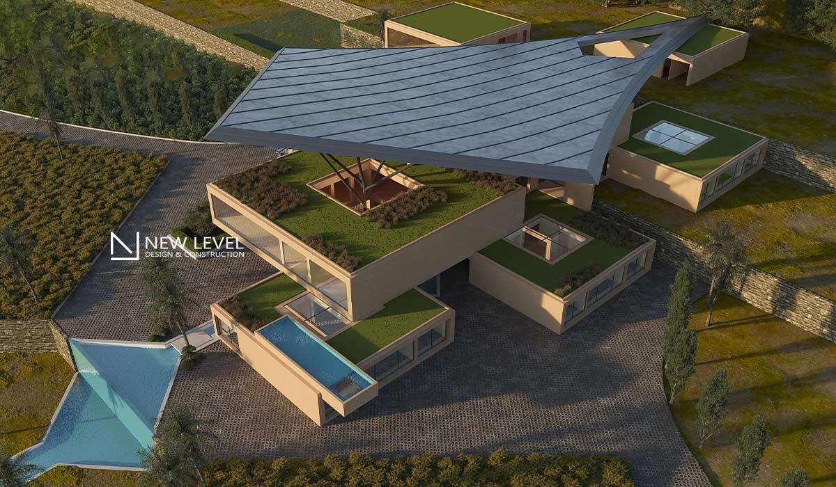 Finally, a part of the site is allocated to the management and protection of water resources. This area includes systems for gray water recycling and rainwater collection, which are used to irrigate the fields and provide water for swimming pools. These actions not only reduce the environmental impact, but also ensure the sustainability of the project as an outstanding example of green architecture.