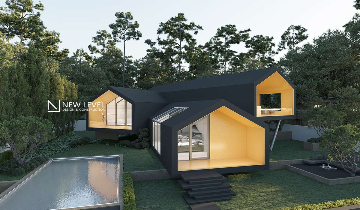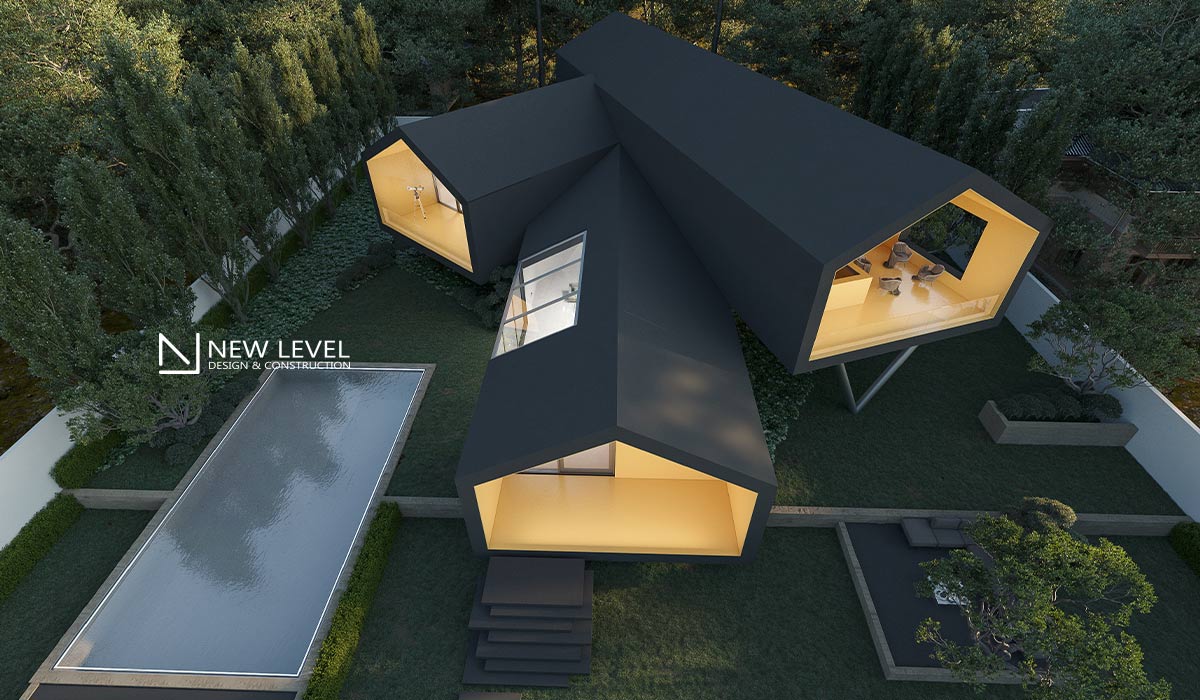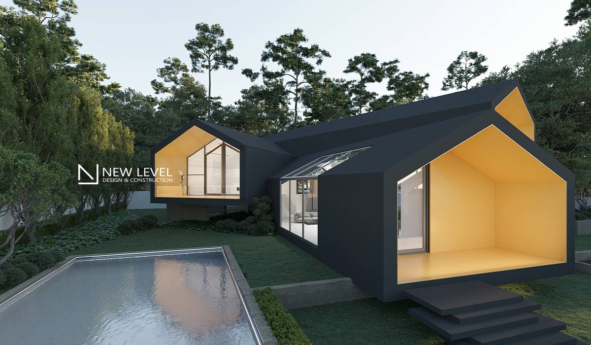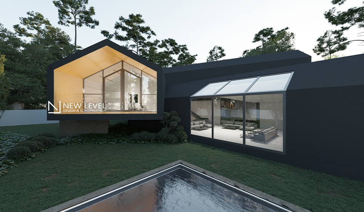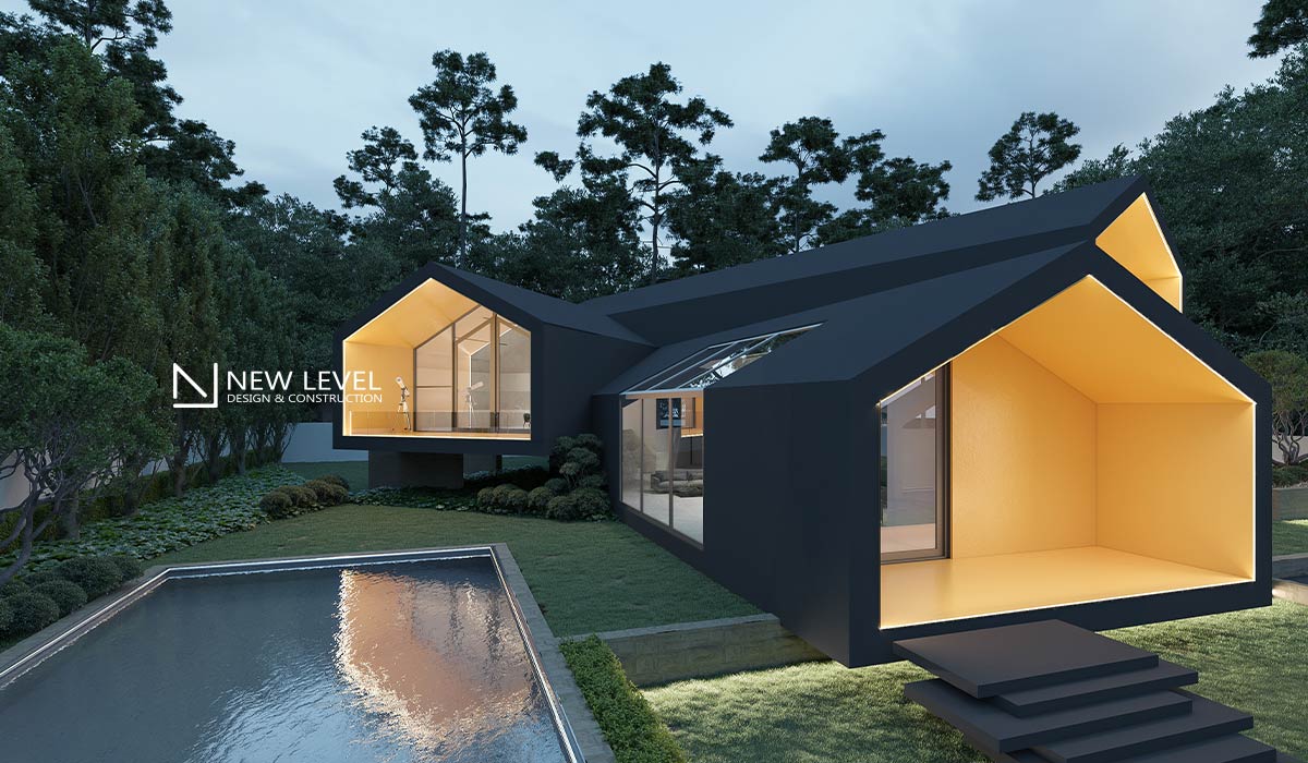 The design of the villa is divided into three separate volumes, and each of them has its own special function. The central volume is allocated to the public living room, which provides a warm and open environment for social interactions due to the transparency of the glass walls.