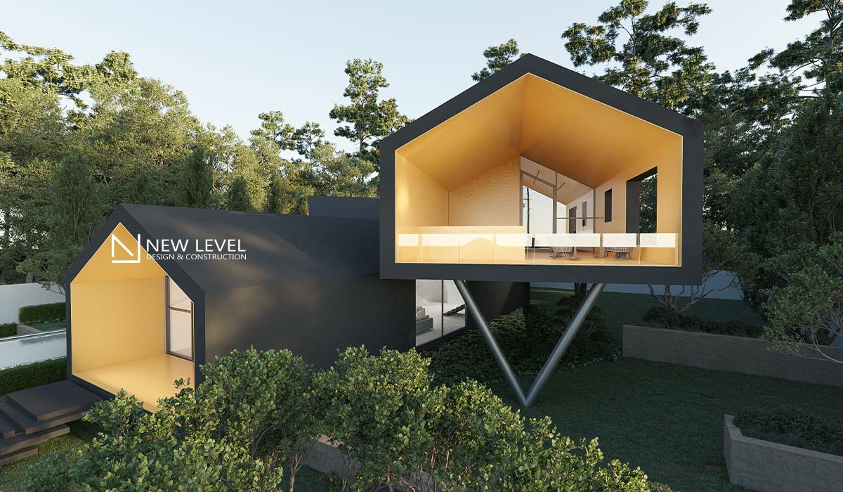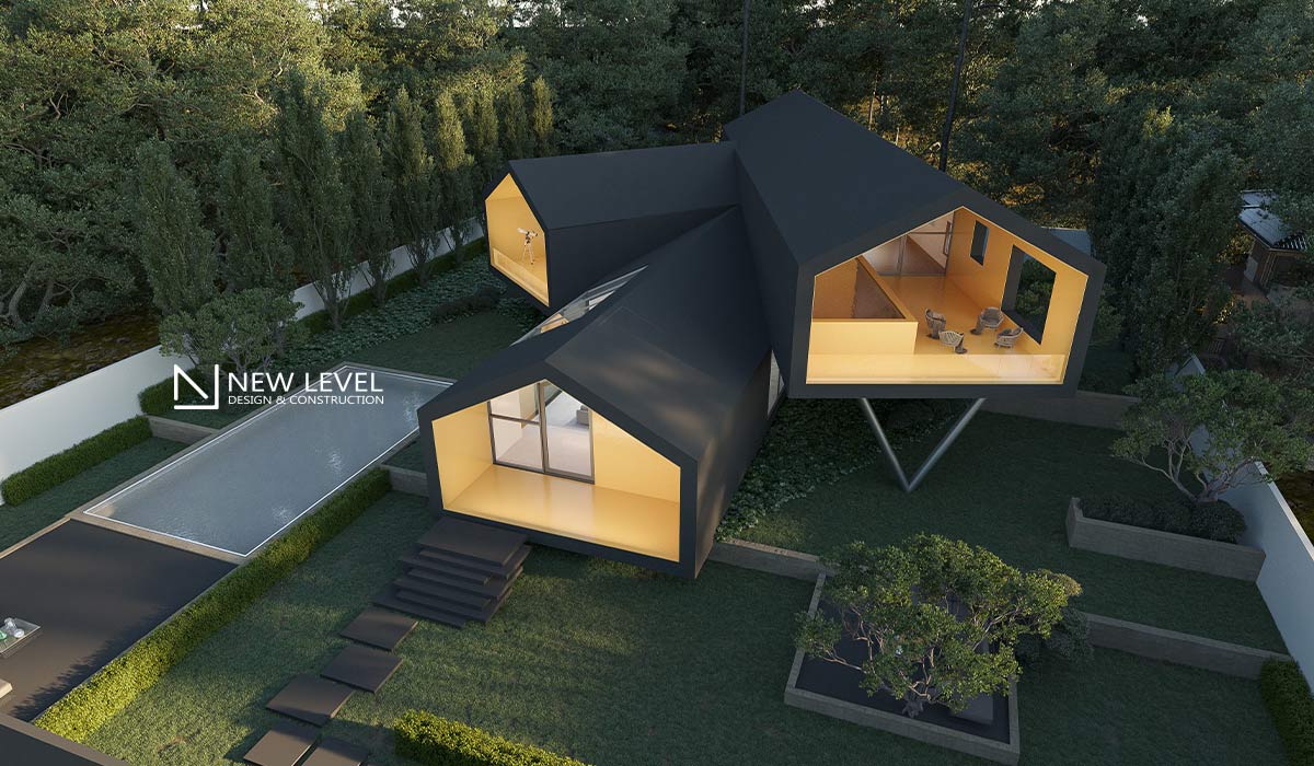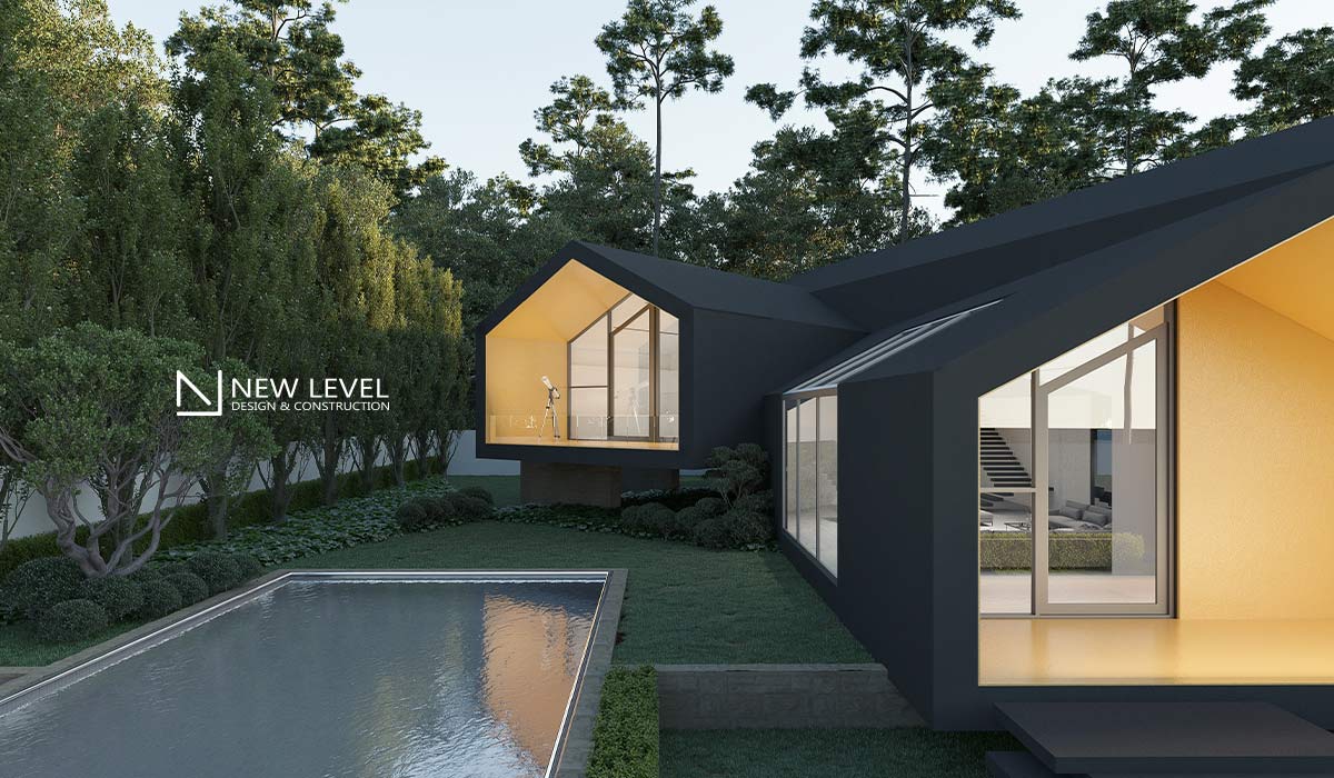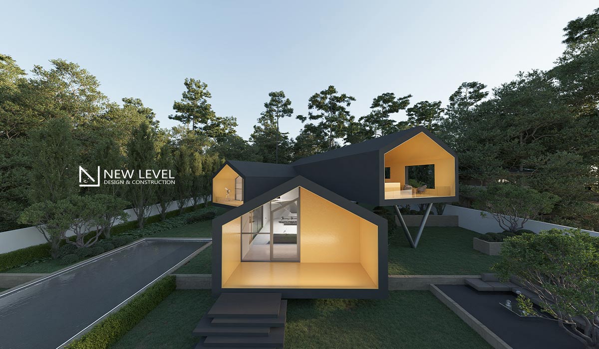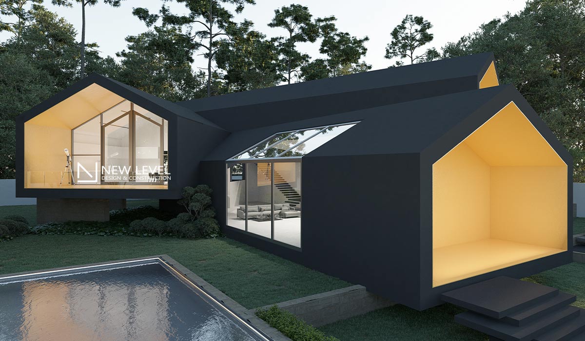 The design of the villa is divided into three separate volumes, and each of them has its own special function. The central volume is allocated to the public living room, which provides a warm and open environment for social interactions due to the transparency of the glass walls.