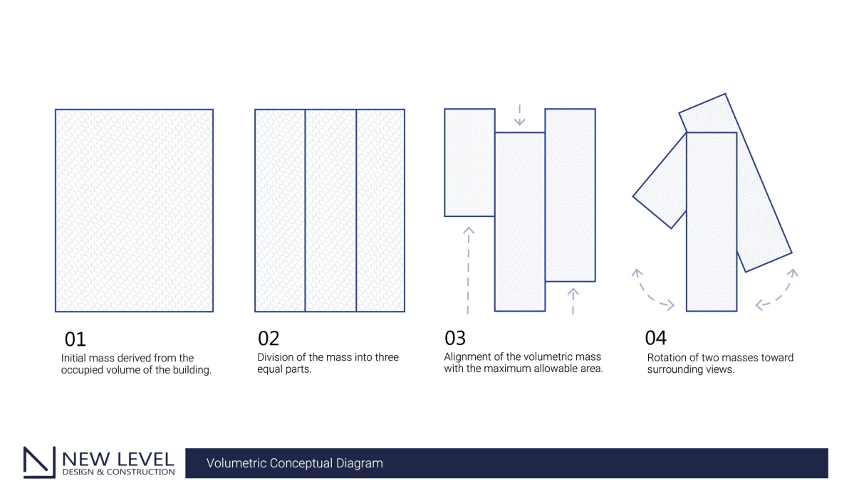 Three Sights Villa, which is located in the north of Iran, offers an innovative reinterpretation of traditional architecture using gable roofs. The design idea was based on the maximum utilization of the natural scenery of the surrounding forests. With a central axis as the focal point, the volumes of the building are rotated in such a way that every interior space has the most visibility and visual connection with the nature.